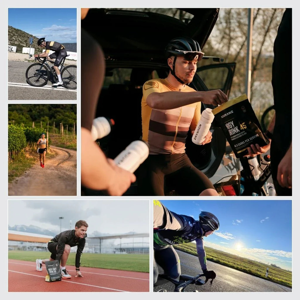 Aby uzyskać najlepsze wyniki, łącz Nrgy Drink 45 z innymi produktami energetycznymi Nduranz. Wszystkie mają ten sam stosunek węglowodanów, a te, które zawierają elektrolity, mają ten sam skład elektrolitów Nduranz — co minimalizuje problemy trawienne.