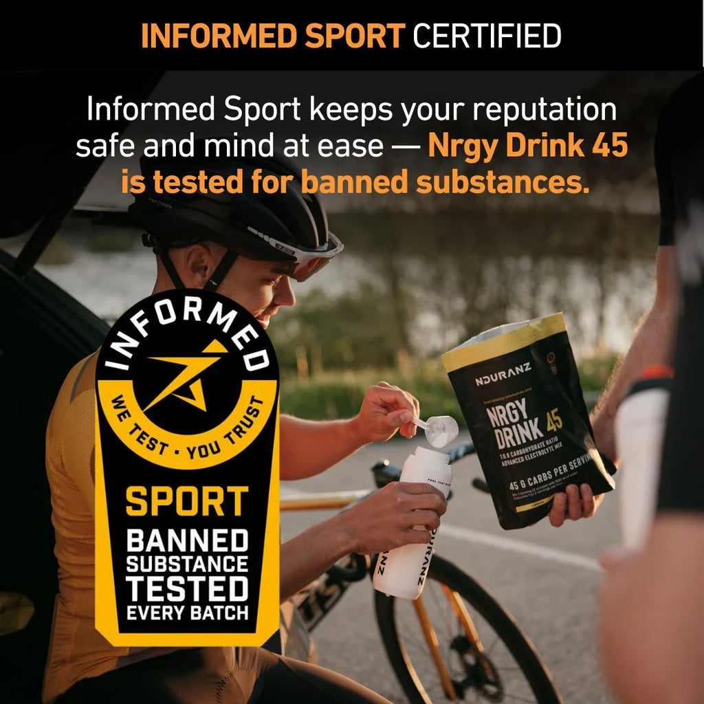 Każda partia napoju Nrgy Drink 45 jest testowana pod kątem obecności substancji zabronionych w ramach programu Informed Sport. Oznacza to, że możesz bez obaw uzupełniać energię — Twoje wyniki pozostaną uczciwe, a Twoja reputacja bezpieczna.